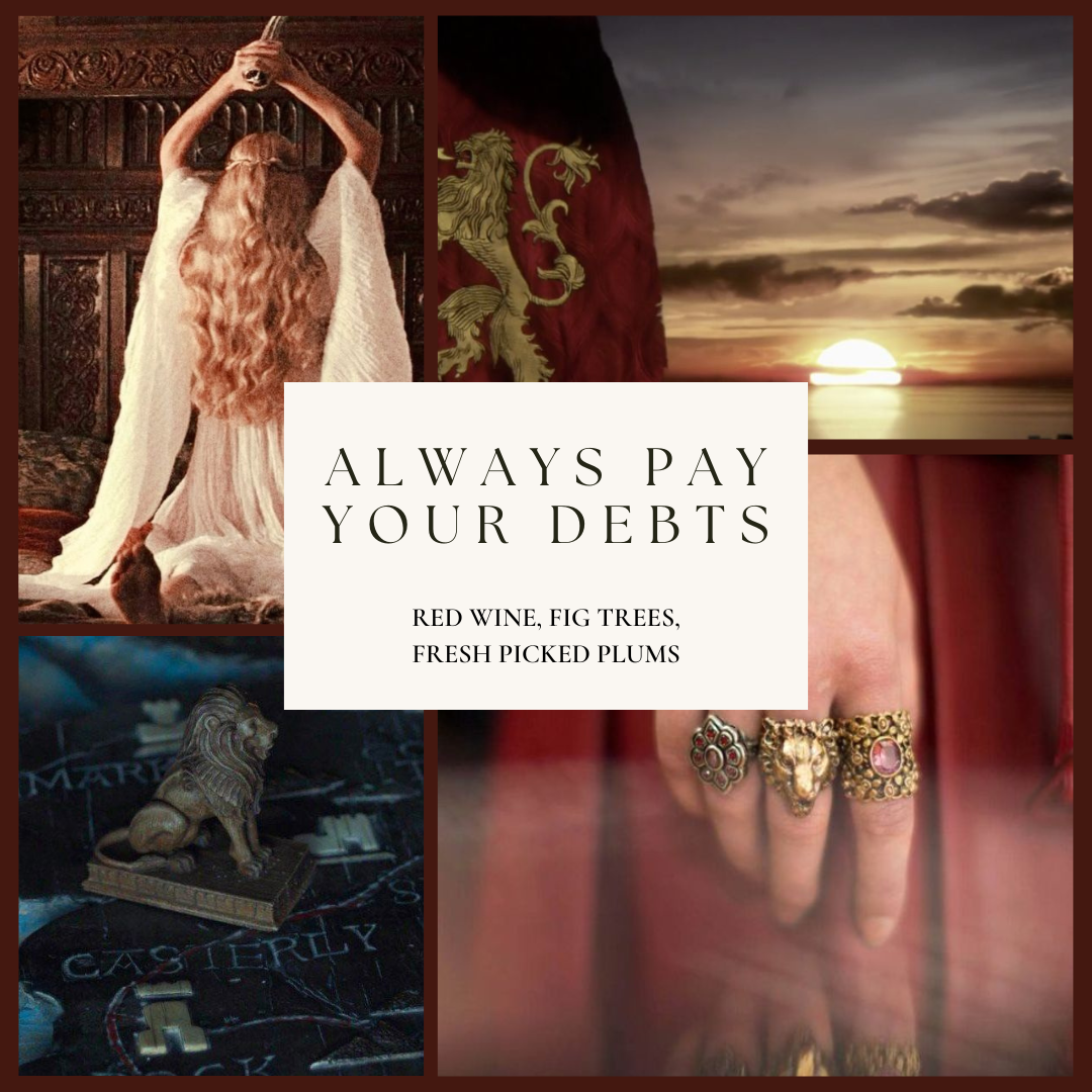 Imagine the commanding world of House Lannister, the velvety aroma of red wine swirling in a noble silver chalice, the lion sigil standing proud against a field of rich crimson, the flicker of gold coins catching the firelight, unparalleled influence and unwavering loyalty, an endless game of chess with calculating precision, regal ambition and the relentless pursuit of legacy.