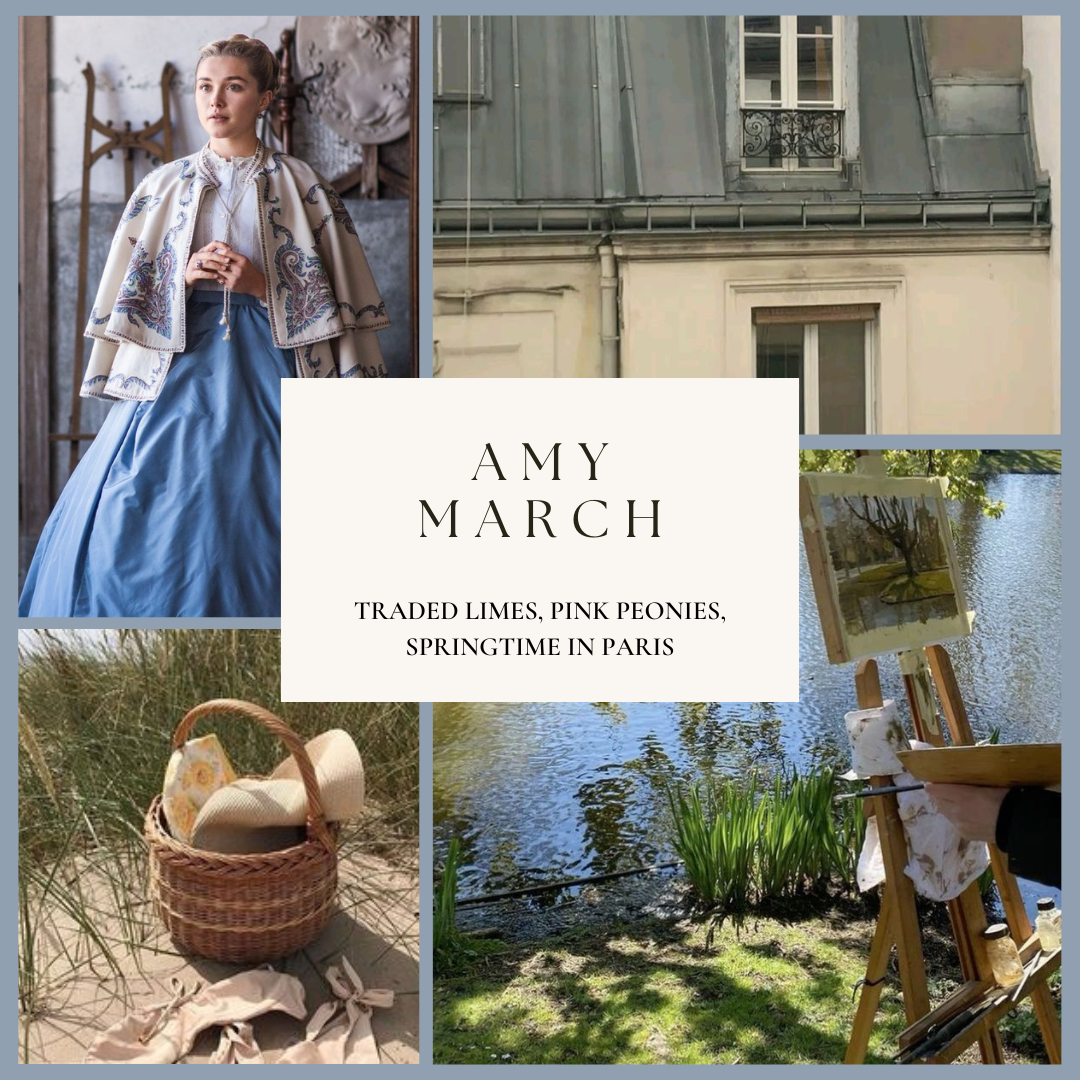 Imagine a powder blue dress swishing through sunlit rooms, blonde pigtails tied neatly as she leans over her canvas, splattered aprons bearing the marks of her artistic pursuits, the sweet tang of juicy raspberries lingering in the air, recalling secret trades of limes in a lively classroom, wandering the cobbled streets of Paris, sketchbook in hand, surrounded by the delicate fragrance of lush pink peonies, far-off adventures, dreams of grandeur, and the unbreakable bond she shares with her sisters.