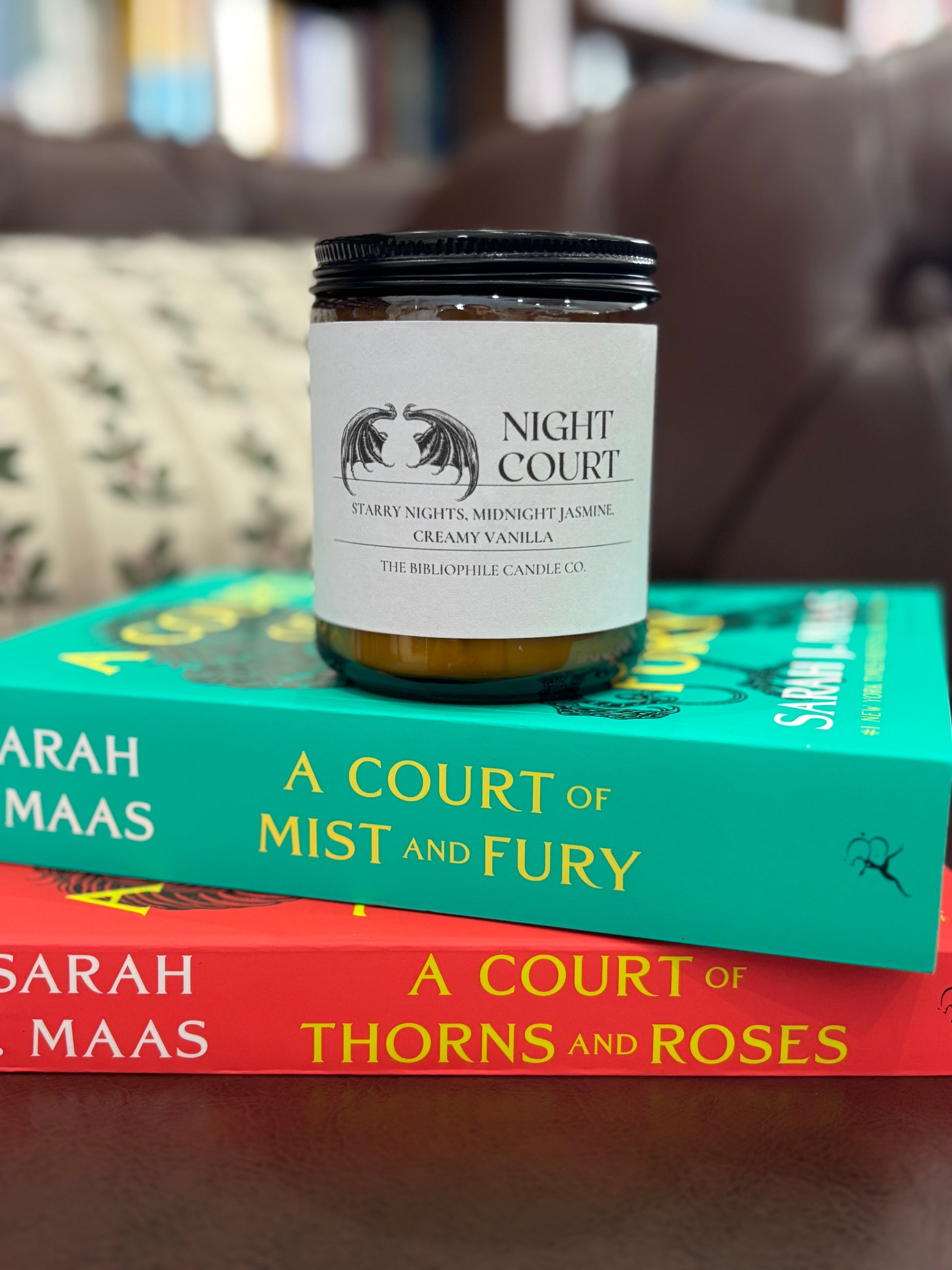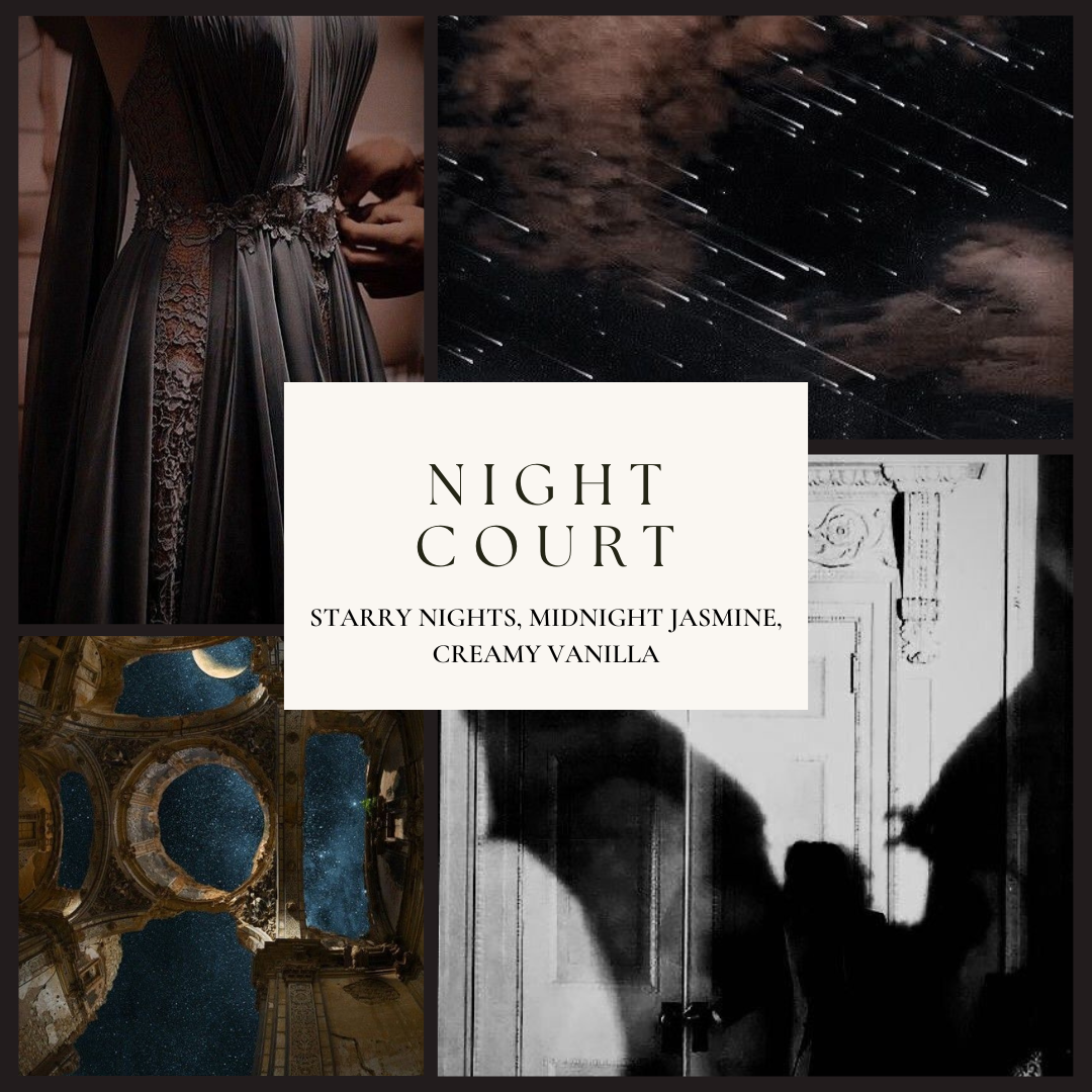 Imagine a city bathed in starlight, its spires reaching toward a velvety night sky scattered with endless constellations, jasmine drifting through the air as a high lord with mighty wings soars above, a silent guardian of this realm of dreams, champagne glasses clinking on a balcony overlooking the sparkling city, each toast filled with whispered secrets and unbreakable bonds, the quiet of a wintry cabin, the warmth of vanilla mingling with the crackling fire, wrapping you in comfort and wonder, the essence of a court built on hope, love, and the magic of the night.